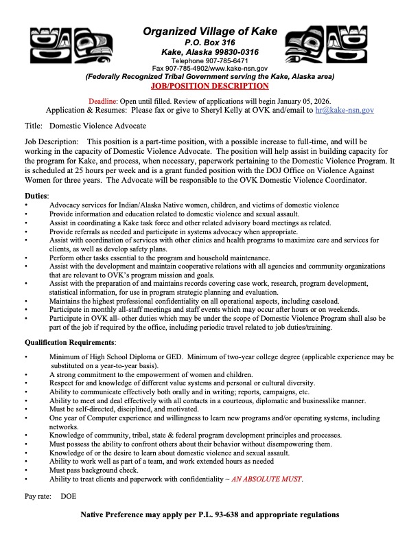 We are currently hiring two positions related to our Domestic Violence Program. For more information, please visit ‘Education & Employment‘ and submit your application to Mona Evan.